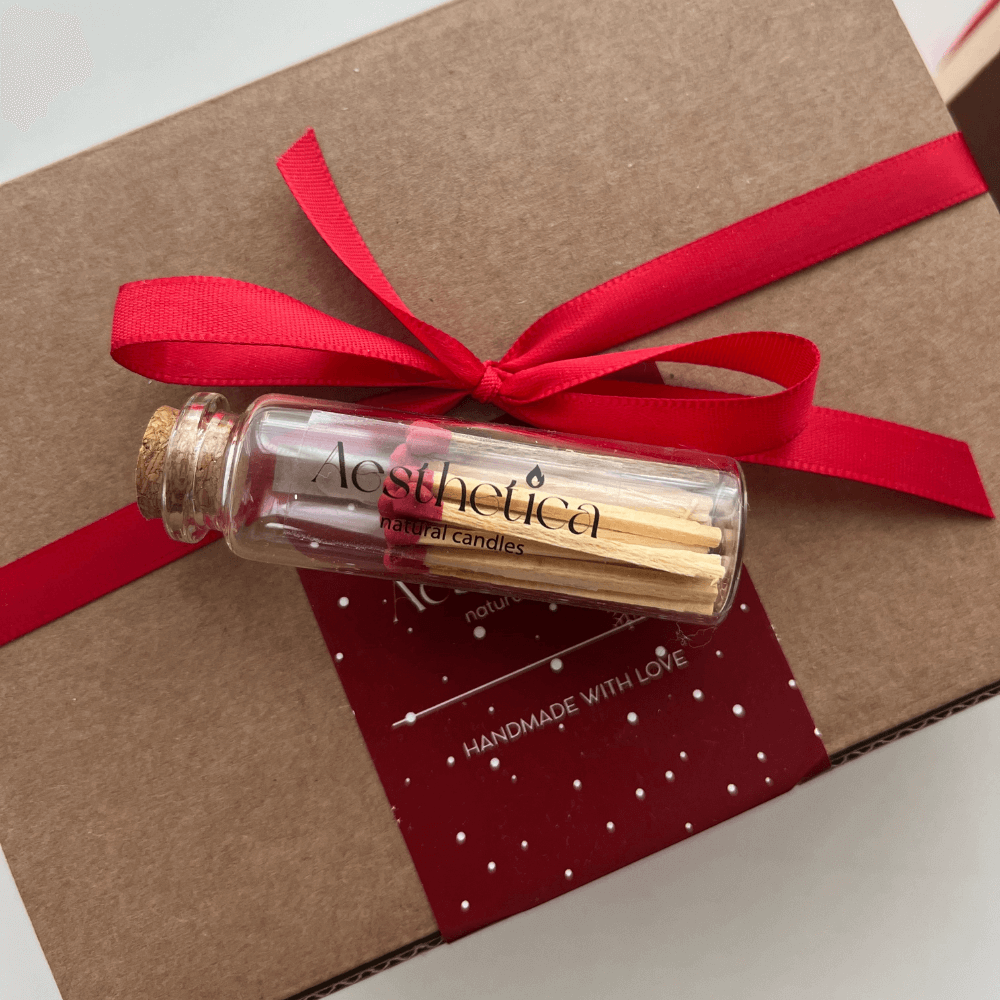 Всяка стъкленица съдържа 20 броя кибритчета с дървено тяло и цветна глава. Стигат, за да запалиш над 15–20 свещи, а всяко пламъче гори стабилно и равномерно.