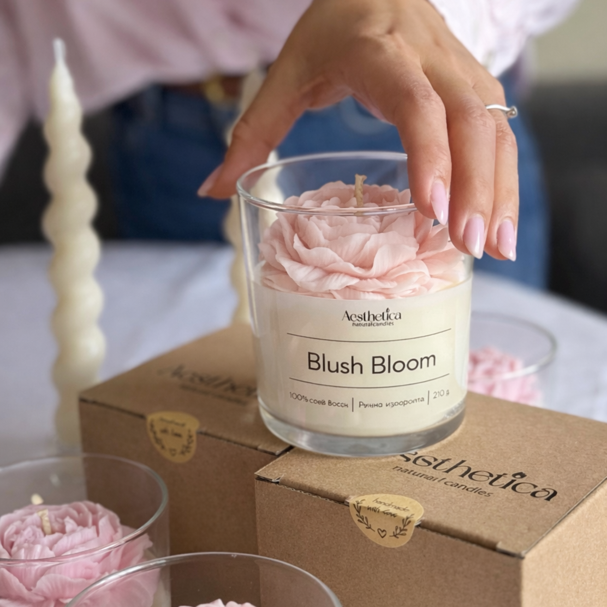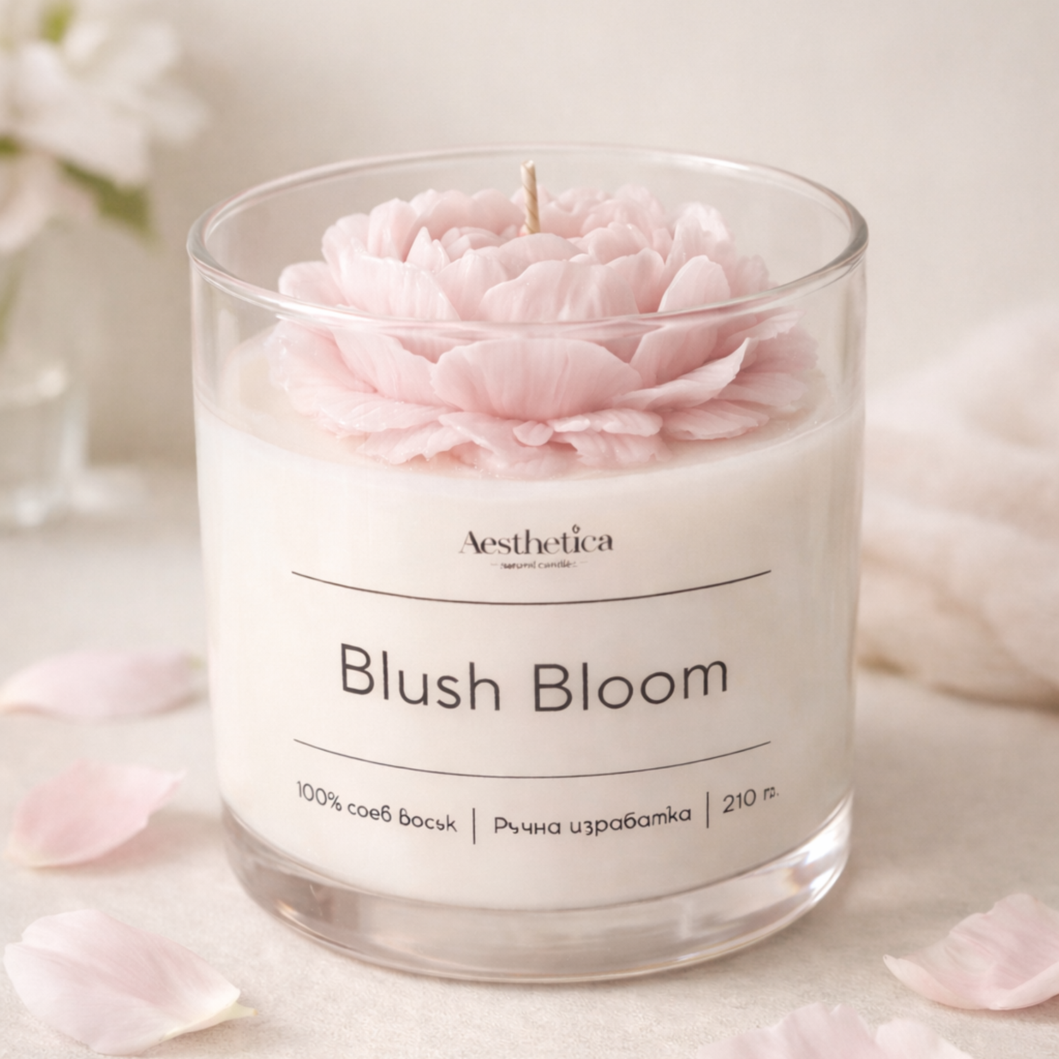 Ароматът на божур в тази свещ е нежен, леко сладък и безкрайно елегантен – сякаш разхождаш се в пролетна градина.
