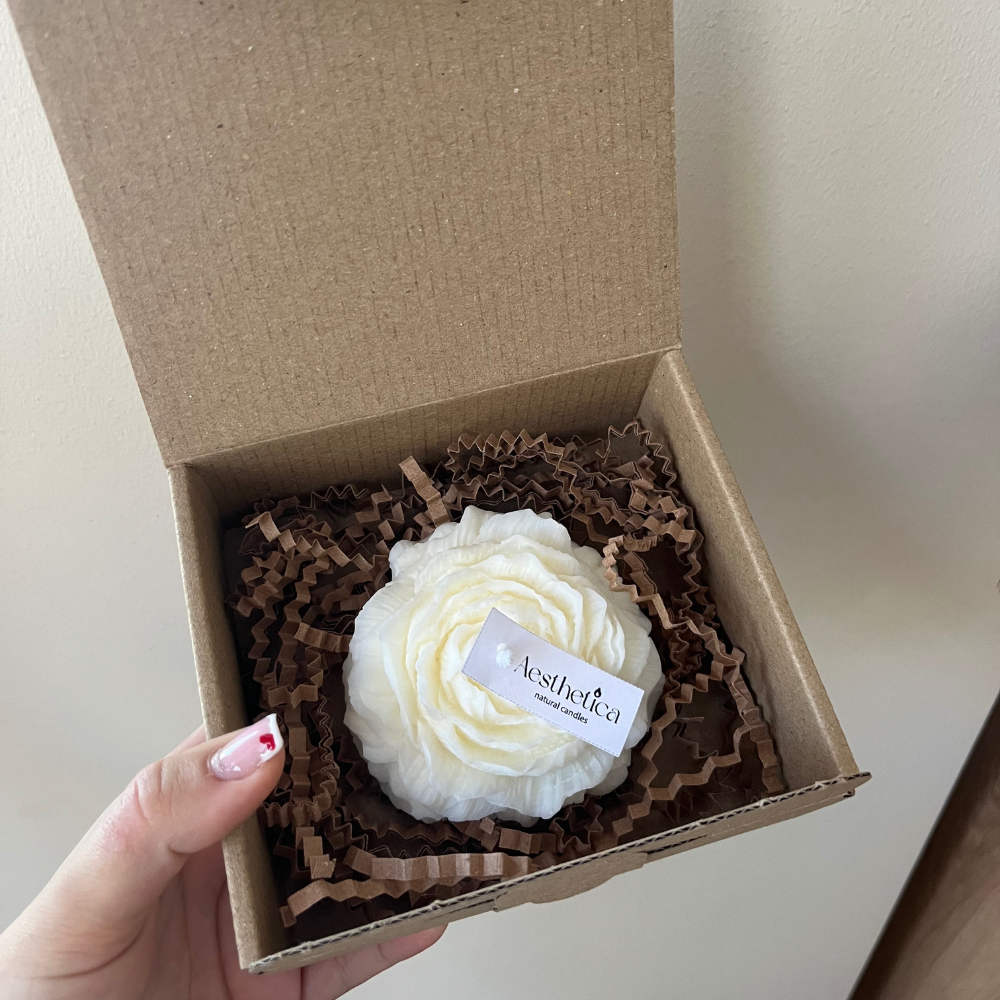 Свещ „Роза“ е ода на нежността – излята на ръка с внимание към всяко листенце. Формата ѝ е изящна и естетична, превръщайки я в акцент за всеки интериор.