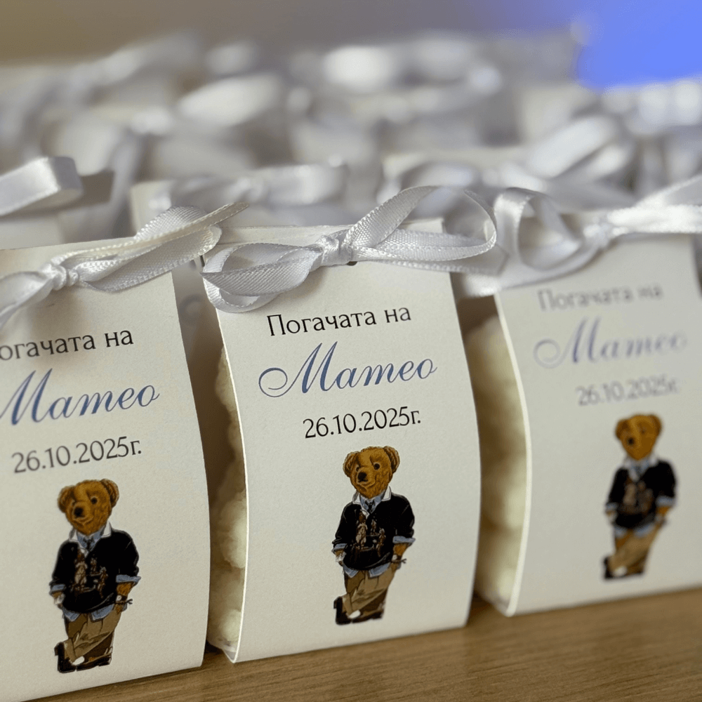 Всяка свещ идва в персонализирана картонена опаковка, подходяща за всеки повод – от рожден ден до сватба. Устойчиво, красиво и лично – точно каквото искаш да поднесеш.