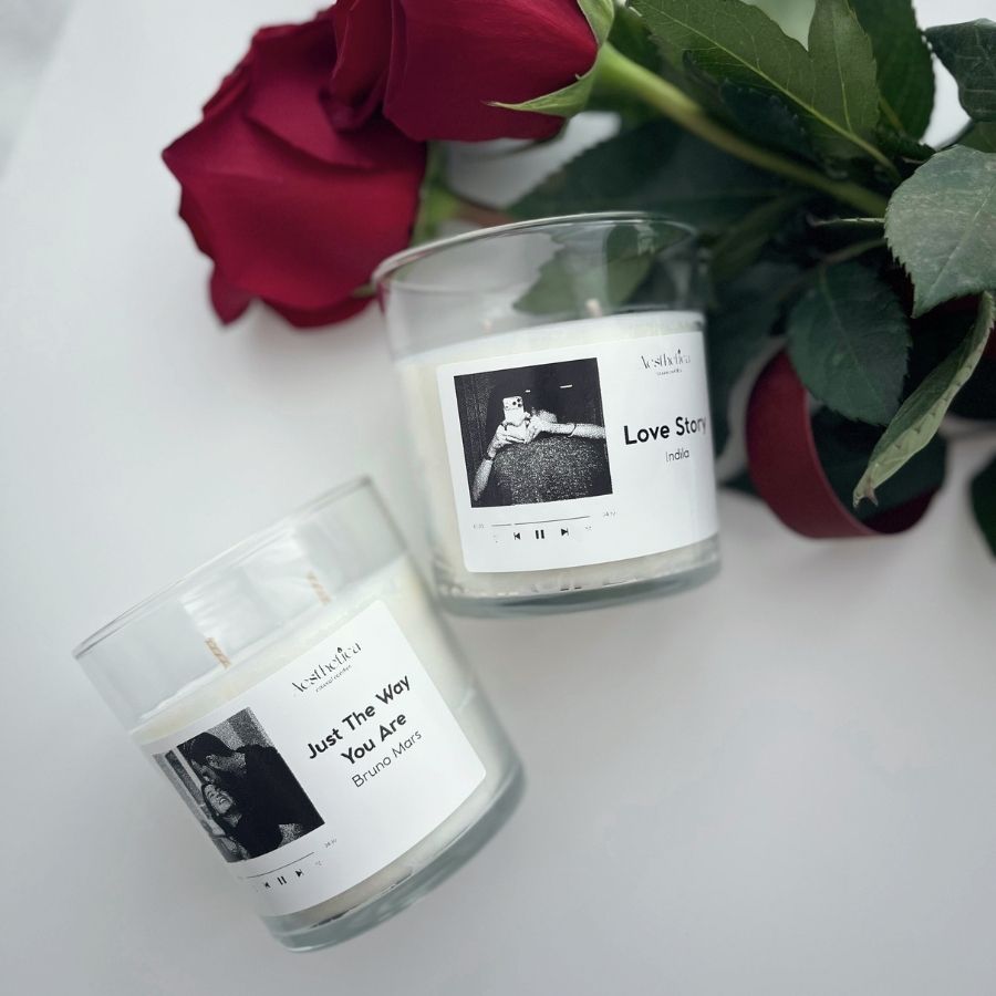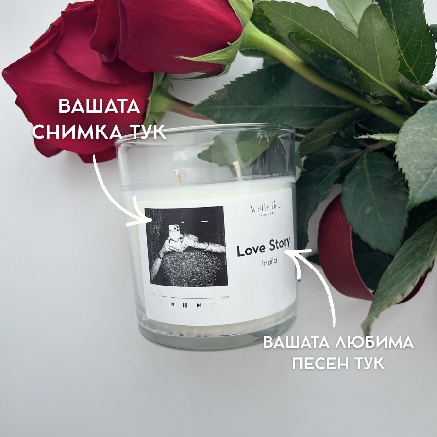 Можеш да персонализираш свещта с ваша снимка и любима песен. При поръчка в полето „Бележки“ напиши избраната песен, а снимката изпрати на имейл: aesthetica.candles@gmail.com или в нашите социални мрежи.